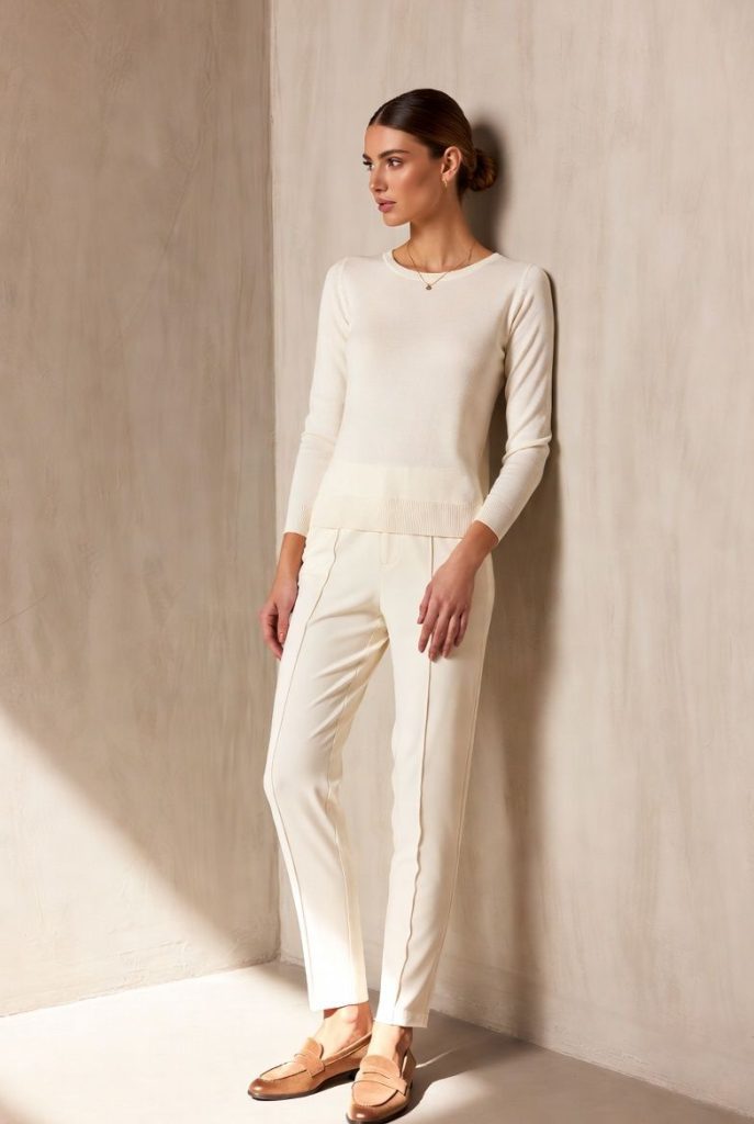 - ✔ Neutral trousers — pair with almost anything