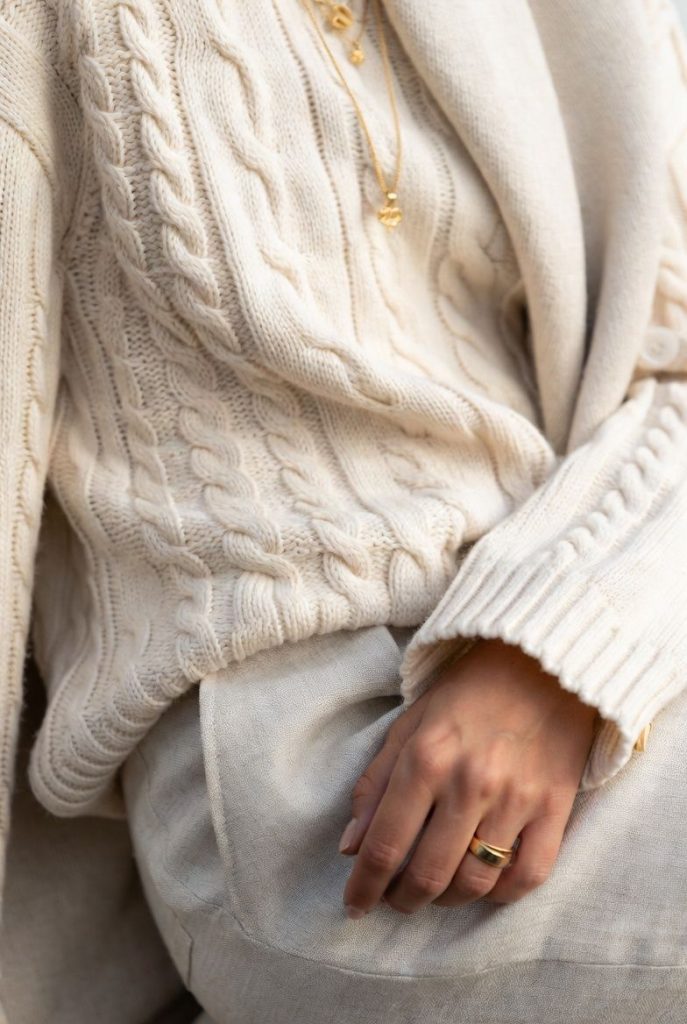 Style tip — Mix textures (knit + linen + leather) to avoid flatness.