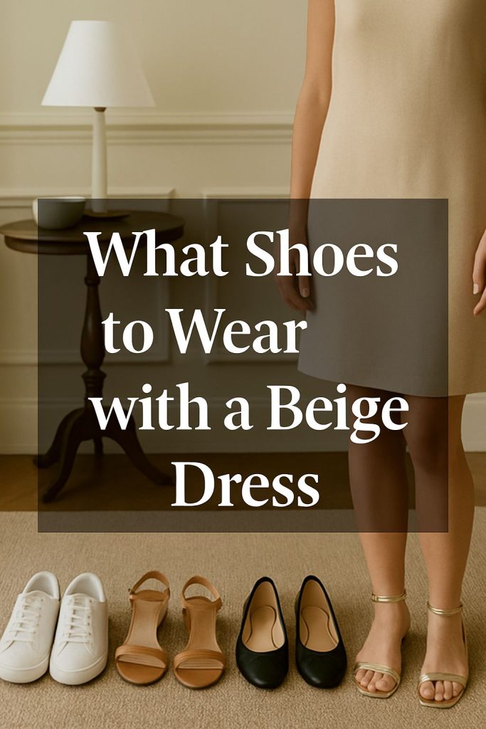 What shoes to wear with beige dress? I had no clue the first time I put one on. I stood in my room staring at the floor, shoes everywhere. Sneakers, sandals, heels… even those glittery ones I always forget I own.